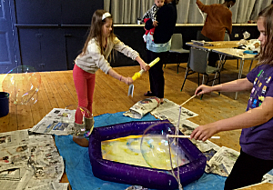 got us wet and sticky mixing bubble liquid in a paddling pool, using